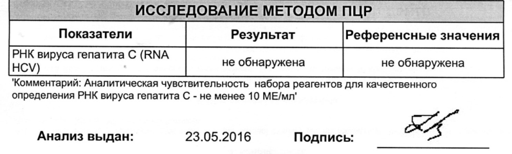 Вот, что он ответил: "Для начала, ничего не меняя в терапии, Вам нужно обновить текущую ПЦР - РНК вируса гепатита С со стандартной чувствительностью (50-60 МЕ).