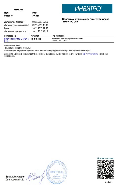 ГепС, генотип 1, ф-0 (5,8), в/н 1,0*10^7МЕ/мл от 16.02.2017г.