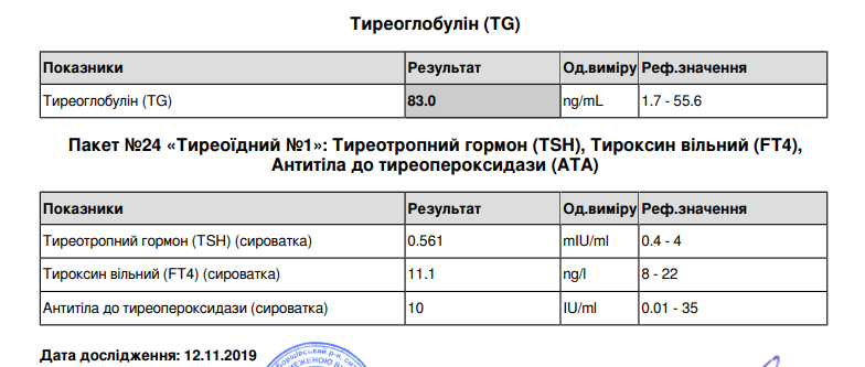Ну да, на узи обнаружили узлы и кисты и сама щитовидка увеличена в 2 раза. Пошла в пятницу к эндокринологу, направила на эти анализы. Утром сегодня сдала, только что результат пришел