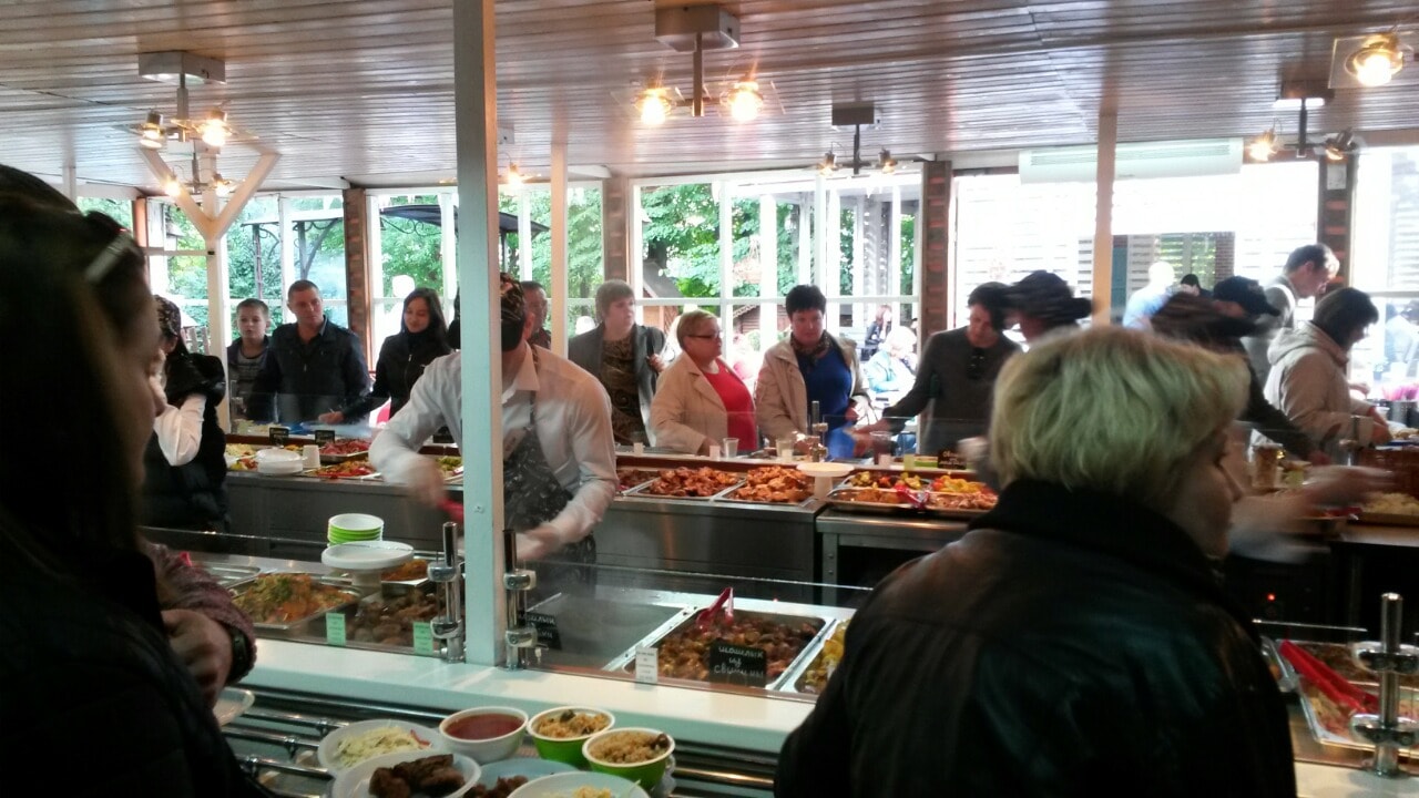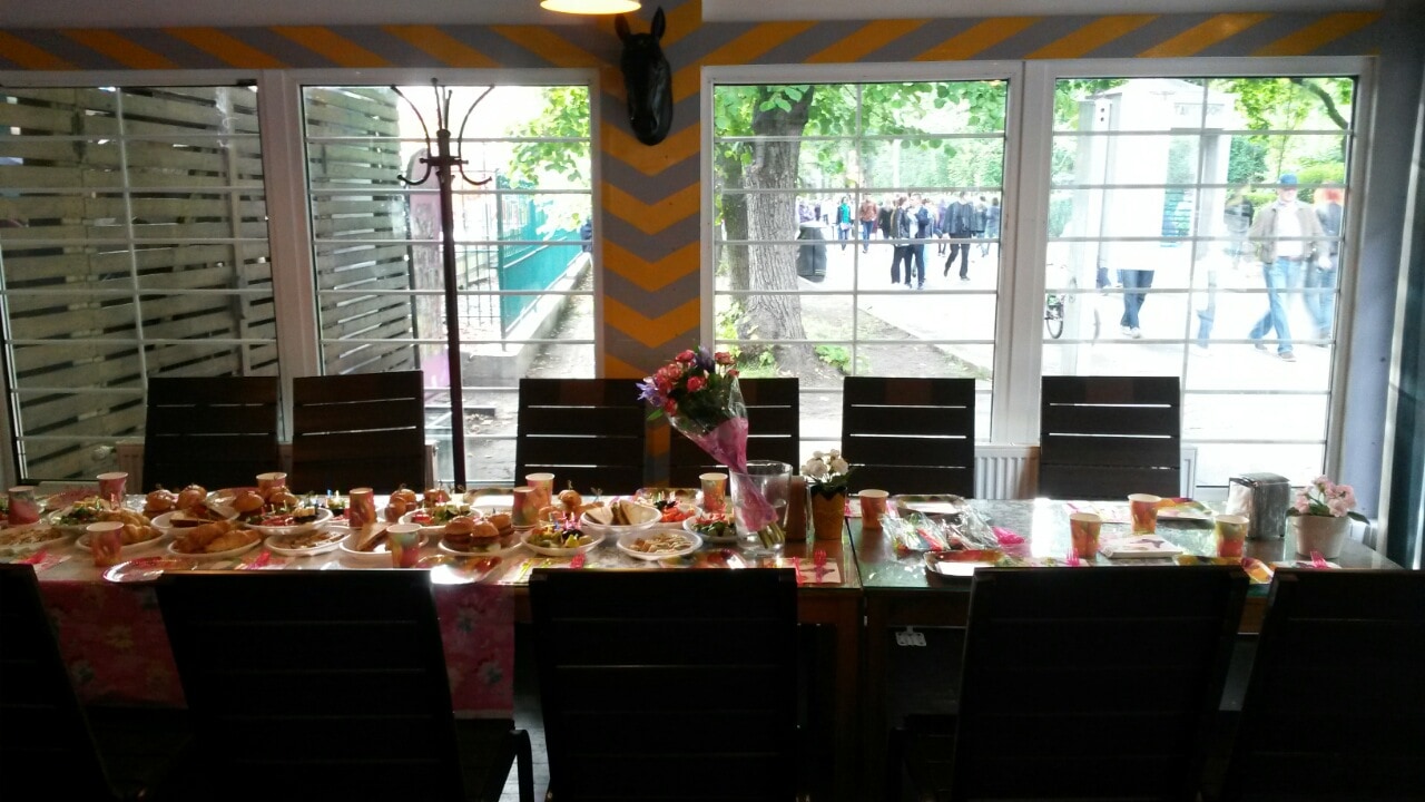 Вот одна кафешка, там шведский стол, крытая и открытая, можно бронировать, алкоголь тоже разрешают свой, но боюсь мы туда все не поместимся, если только стол подругому ставить. Вопчем смотрите, решайте.