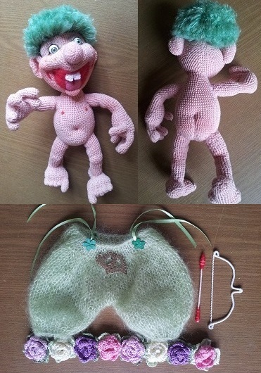 Делая эту куклу, вспомнила давно забытые вязание спицами, крючком, вязание цветов, вышивку.