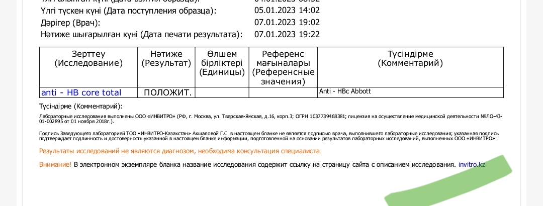 Сдал на гепатит В 04.01.23 г в инвитро анализы 73,75,78. Ответы только от 2- х анализов. Anti-HB core total написано полижительно.Что это означает? Я болен гепатитом B.Блин только этого не хватало, расстроен.