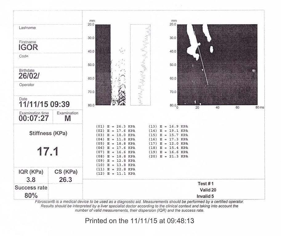 фиброскан 12.12-19,8 кПа, 10.14-34,3 кПа, 18.01.16 -12,5 кПа 02.06-11,5 кП а