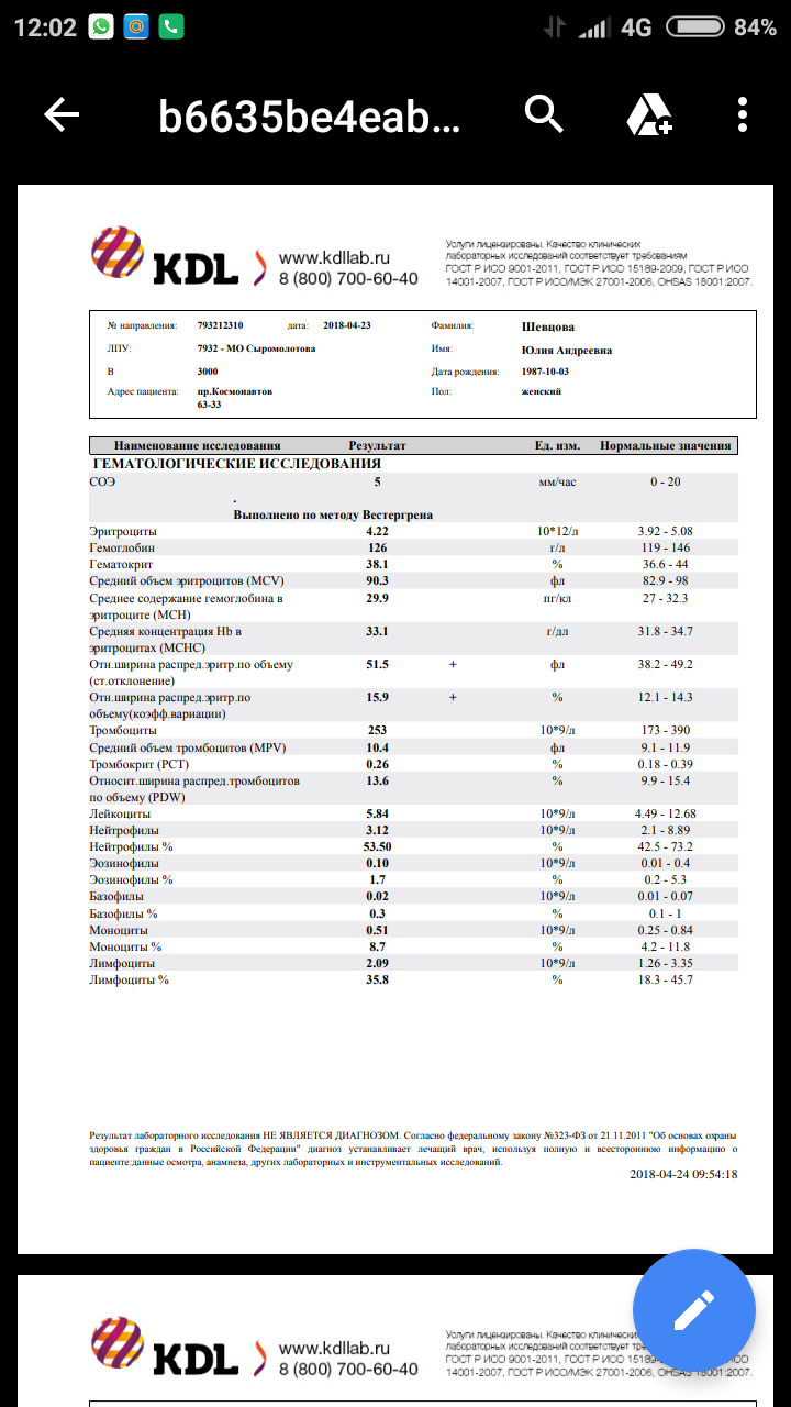 Всем привет!!! Выкладываю свежие анализы, сдавала на днях. В целом чувствую себя хорошо, не считая обострившегося хронического фарингита и походу холицистита, так как после родов весь подбородок покрылся прыщиками и периодически болит правый бок и отдает где-то сзади.Прыщики вроде проходят, а бок ещё беспокоит. 27 апреля поеду на прием к своему гепатологу.