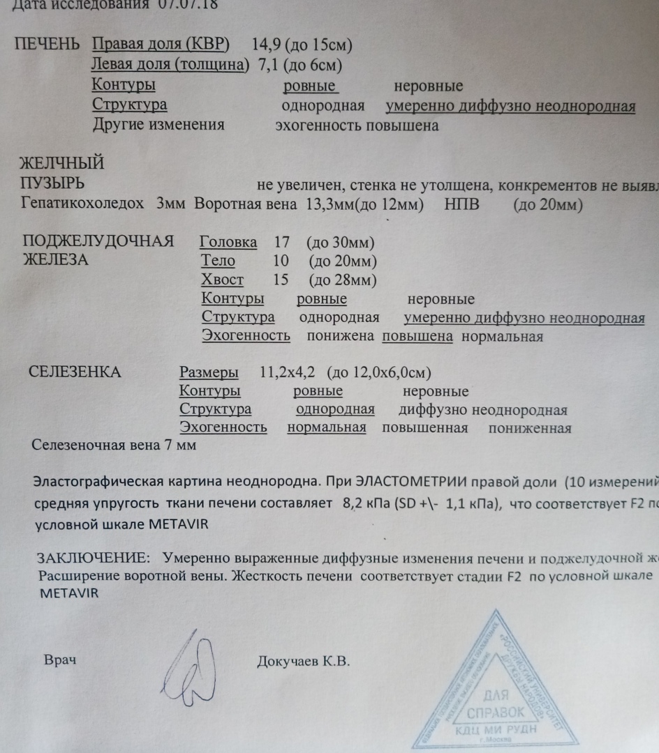 Приветствую всех,кто меня поддерживает и всячески приободряет.Сходил сегодня на УЗИ в РУДН,с замером эластичности печени.