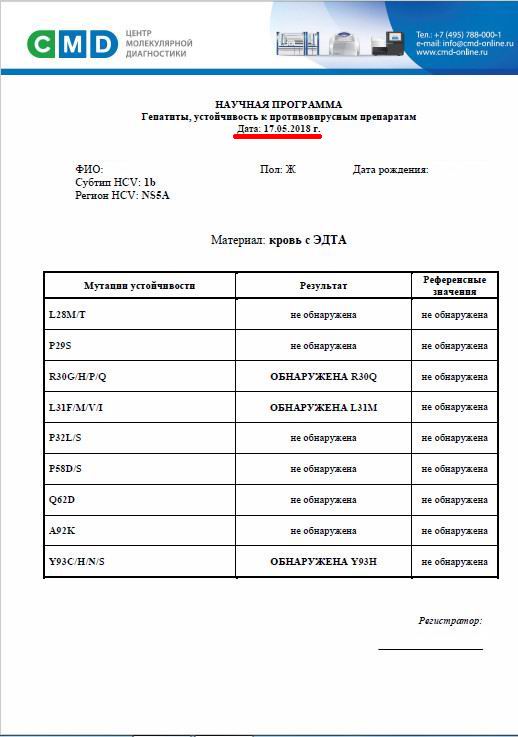 riverain писал(а): 20 июл 2018 08:44 у тебя весьма вероятна мутация в регионе NS5A (к даку) проверить это только можно в Москве в CMD, в других городах - это не реально, кто бы тебе что не говорил, и не обещал.