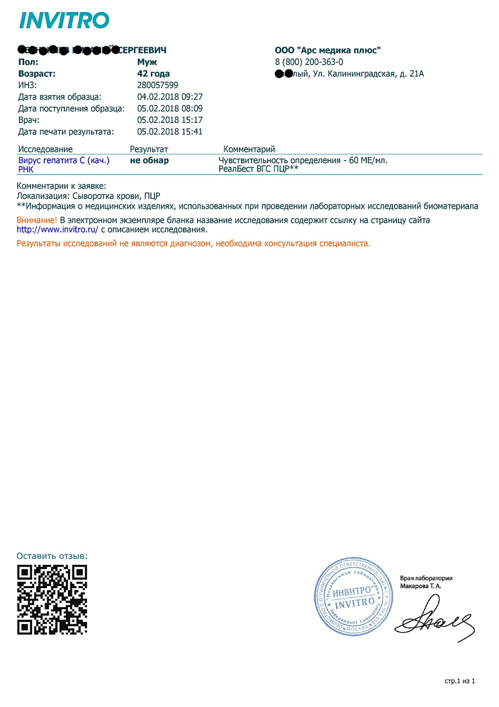 - Гепатит: С ушел в минус