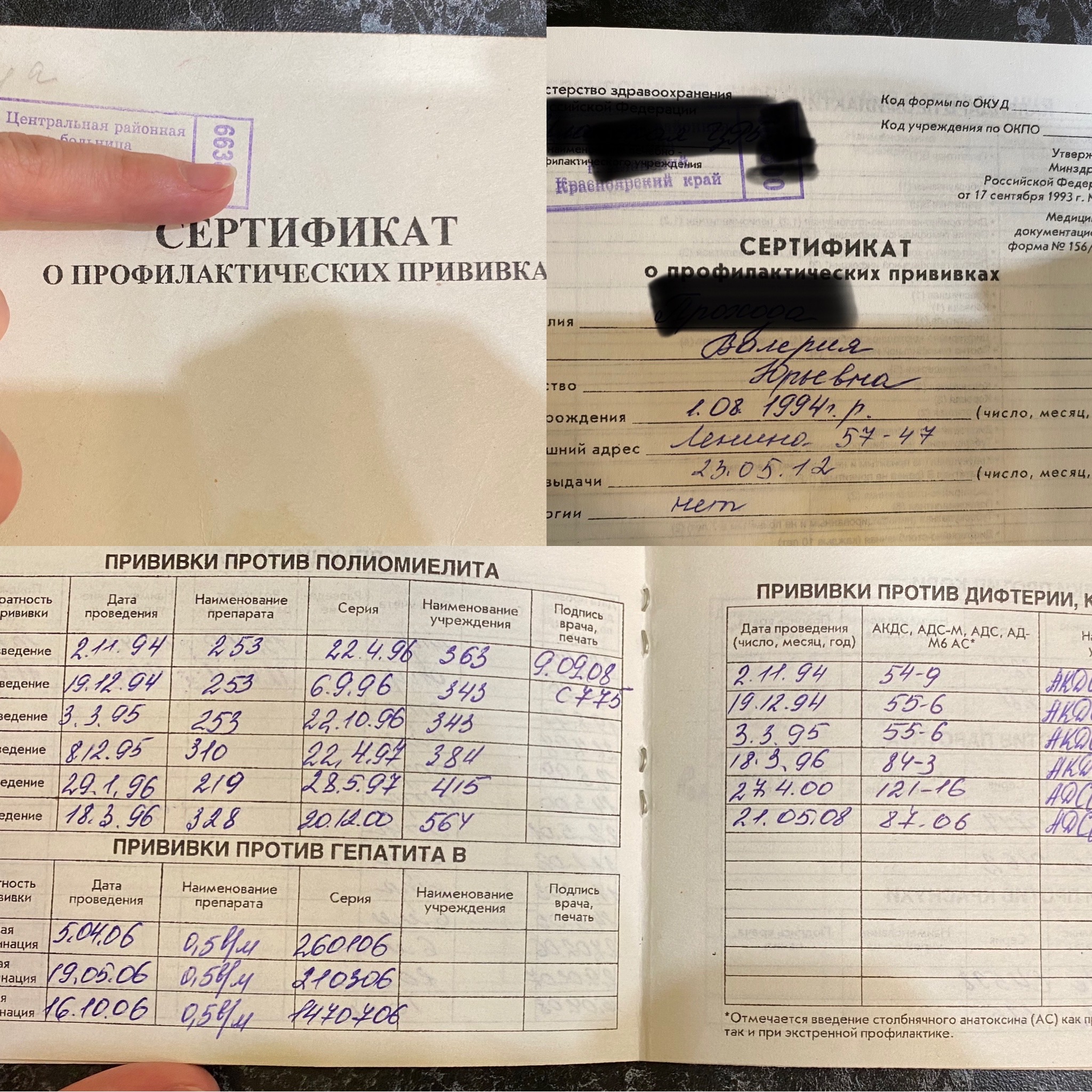 Что-то не то с твоими прививками. Они не могут быть просто внесенными в детскую карту, а в сертификате отсутствовать. У тебя в нем есть прививки при рождении 1994-го года, значит, и прививки 1996-го года были бы в сертификате, если бы их делали.