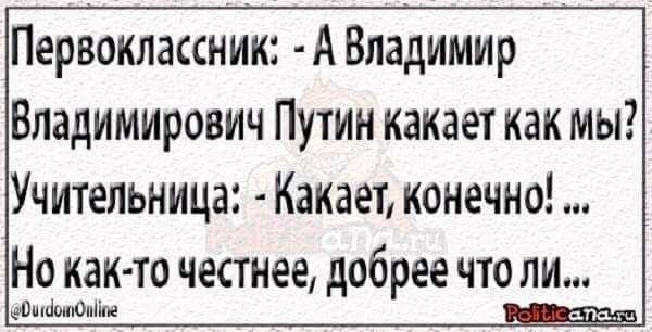 Все что он делает получается душевно. Ну как в анекдоте:Ирина Irina » 22 ноя 2017 23:45 писал(а):smillaЧто то мне так радостно от твоего сообщения!написать Дядьке Путину ответное письмецо в таком духе ))))и часики передать посылочке ,