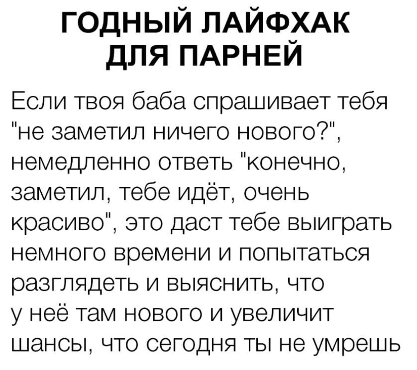 Garry1406, не прокатывает, если она сделала что-то по дому, а ты не заметил и не заценил