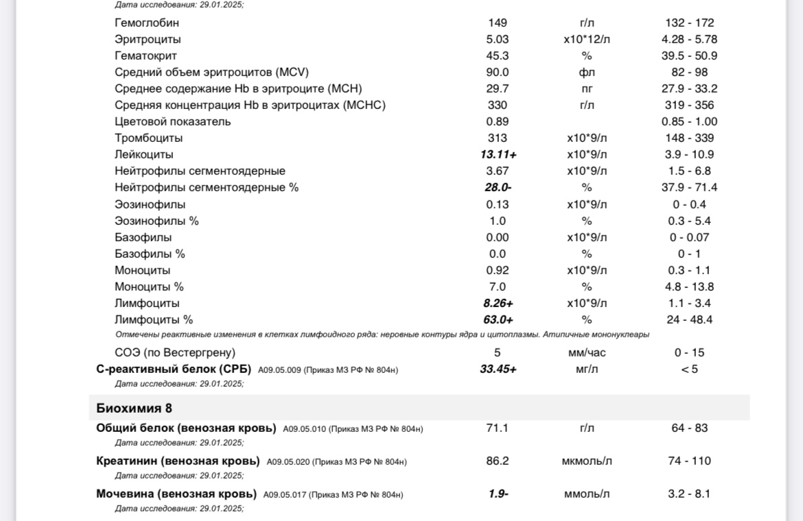 Здравствуйте всем. Подскажите, у мужа температура держится уже больше 2 недель в районе 37,2, вечером поднимается до 37,7-38. Ставили орви. Но антибиотик амоксиклав не сбил ее (сегодня 6 из 7 дней приема). Сдали анализы сегодня, 29.01.25. Настораживает высокие алт, аст, высокие лимфоциты и лейкоциты, высокий срб. Возможно ли это гепатиты , заражение могло быть у стоматолога (сентябрь-октябрь 2024, последнее посещение 16.10.24). На сегодняшний день, 29.01.25, Через 3,5 месяца после последнего посещения стоматолога можно с уверенностью сказать, что это не гепатиты с и б?