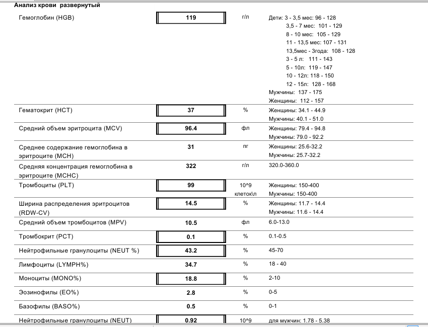 * Мягкая нейтропения, когда АЧН падает ниже нижнего предела в 1500 клеток/мкл, однако по-прежнему выше, чем 1000 клеток/мкл.