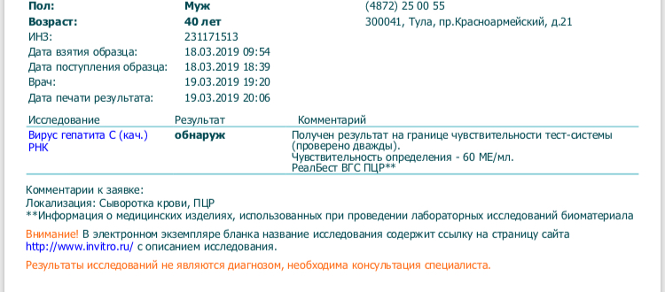 HCV 1b, обнаружен в июне 2018, F0 (5.1 кПа)