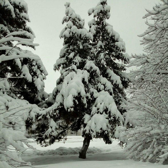 Выглянула с утра в окошко, а там такая красота! Снежок всё еще сыплет, и ноль градусов.