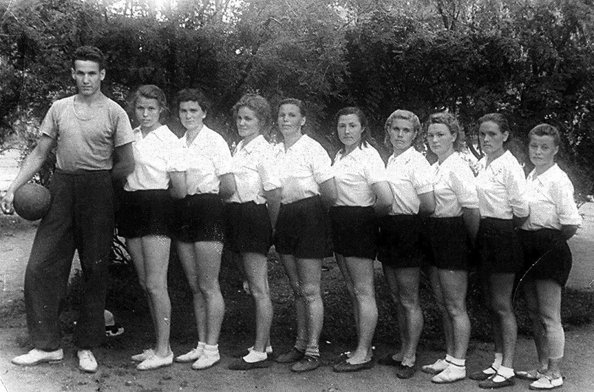 Студент Борис Ельцин - тренер женской волейбольной команды, Курган, 1952 год
