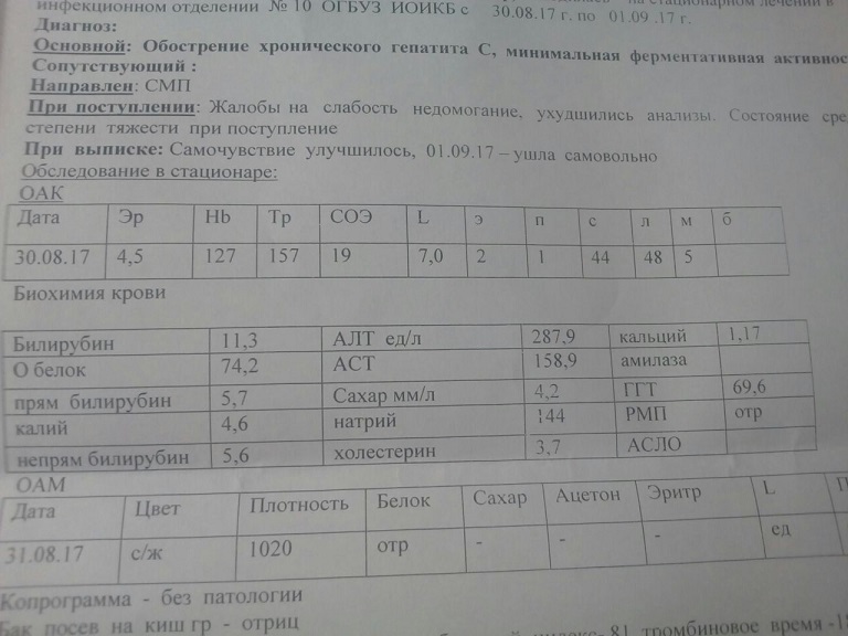 Всем привет и здоровья!сегодня забрала все анализы,после 4недель ПВТ! Пока напишу так,фото отправлю при возможности.Пцр:менее 300,-1*10"8 МЕ/мл. Биохимия:билирубин общ 15,6. АЛТ-17,3. АСТ-23,0. О.белок-73. Щ.ф-486,5. Альбумин-43,9. ОАК:лейкоциты-10.73. Нейрофил-5.66. Лимфоциты-4,08. Эритроциты-3,95. Гемоглобин-121. Гематокрит-0,361. Средний обьемRBC-91.3. Тромбоциты-182. Тромбокрит-0,189. Прокоментируйте пожалуйста :-) иду СОФ+ДАк без рибов