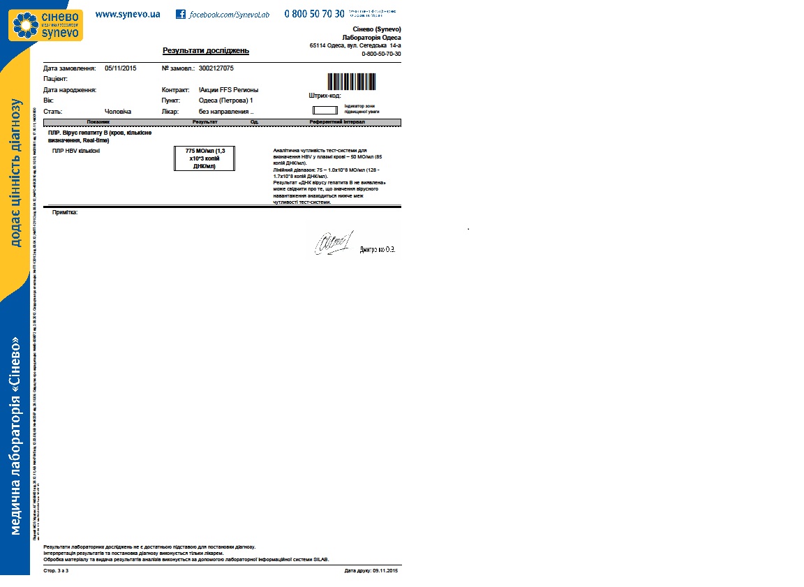 11.12.2012: FibroTest: F0-F1 (0,26); ActiTest: A0 (0,07); HBV - 4200 МЕ/мл; HBeAg - "-"; АТ к HBeAg - "+".
