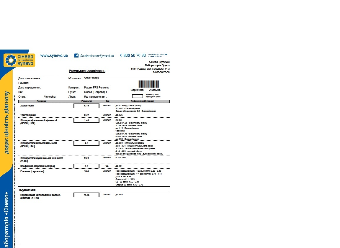 13.07.2013: 6367 МЕ/мл. 28.01.2014: 6900 МЕ/мл. 14.02.2015: 10700 МЕ/мл.