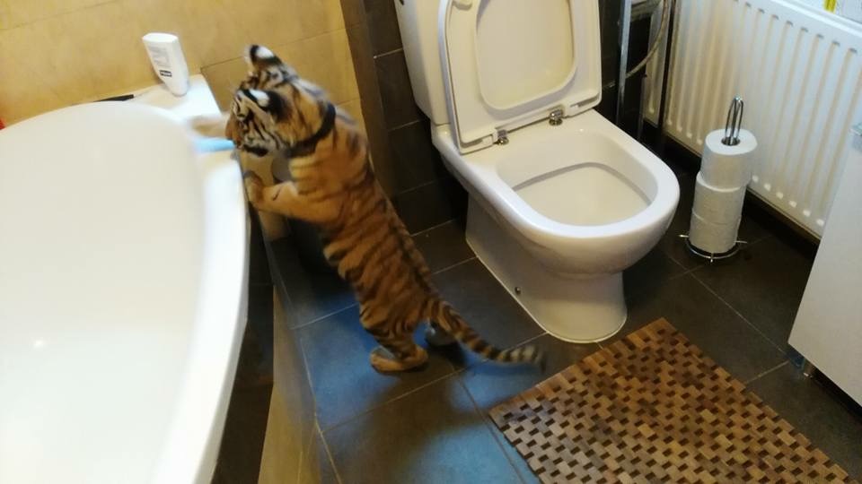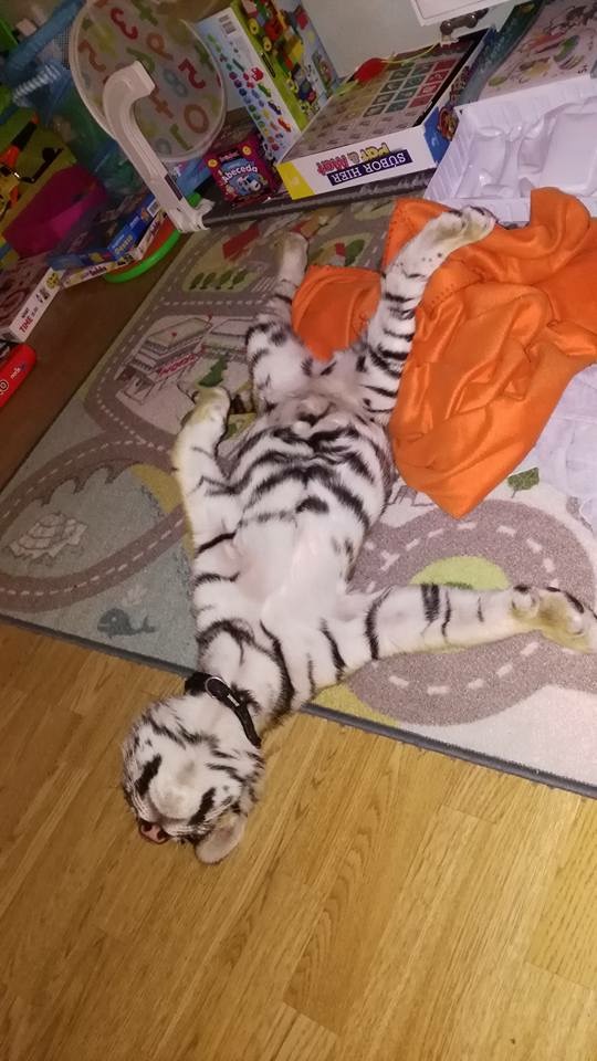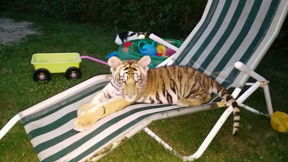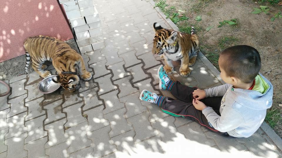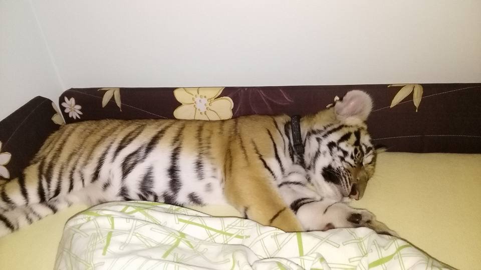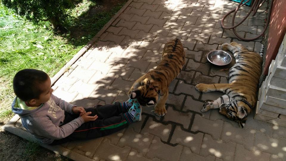 Это мои приемные дети. Яся и Шейла. Жили у нас все лето, пока не подросли. После 6 месяцев уже опасненько... Вернулись к хозяину. Хозяин дрессировщик и мой друг. Тигры удивительные животные. Они вовсе не кошки :-)