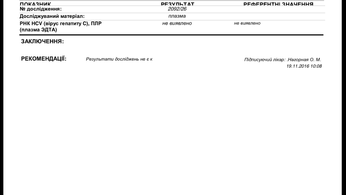 4н: АЛТ 26, АСТ 19, ГГТ26, билирубин 16, сахар 5,6, Холестирин 6,1 ПЦР КАЧ 60 МЕ (-) инвитро