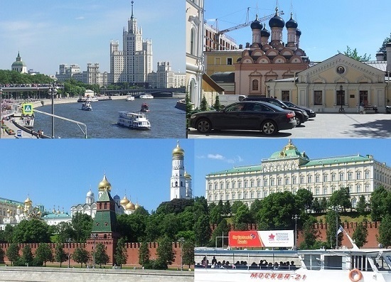 Следом за Соборной площадью Кремля открывается вид на Большой Кремлёвский дворец. По Москве-реке вовсю снуют пароходики, речные трамвайчики - навигация в разгаре.