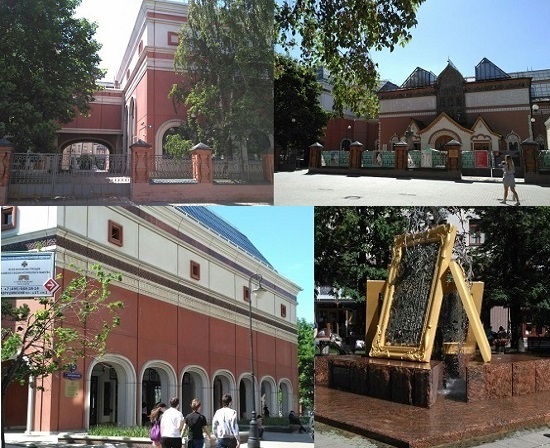 Далее основной корпус и вход в Третьяковскую галерею (фасад выполнен по рисункам Васнецова), перед ним памятник основателю галереи П.М.Третьякову .