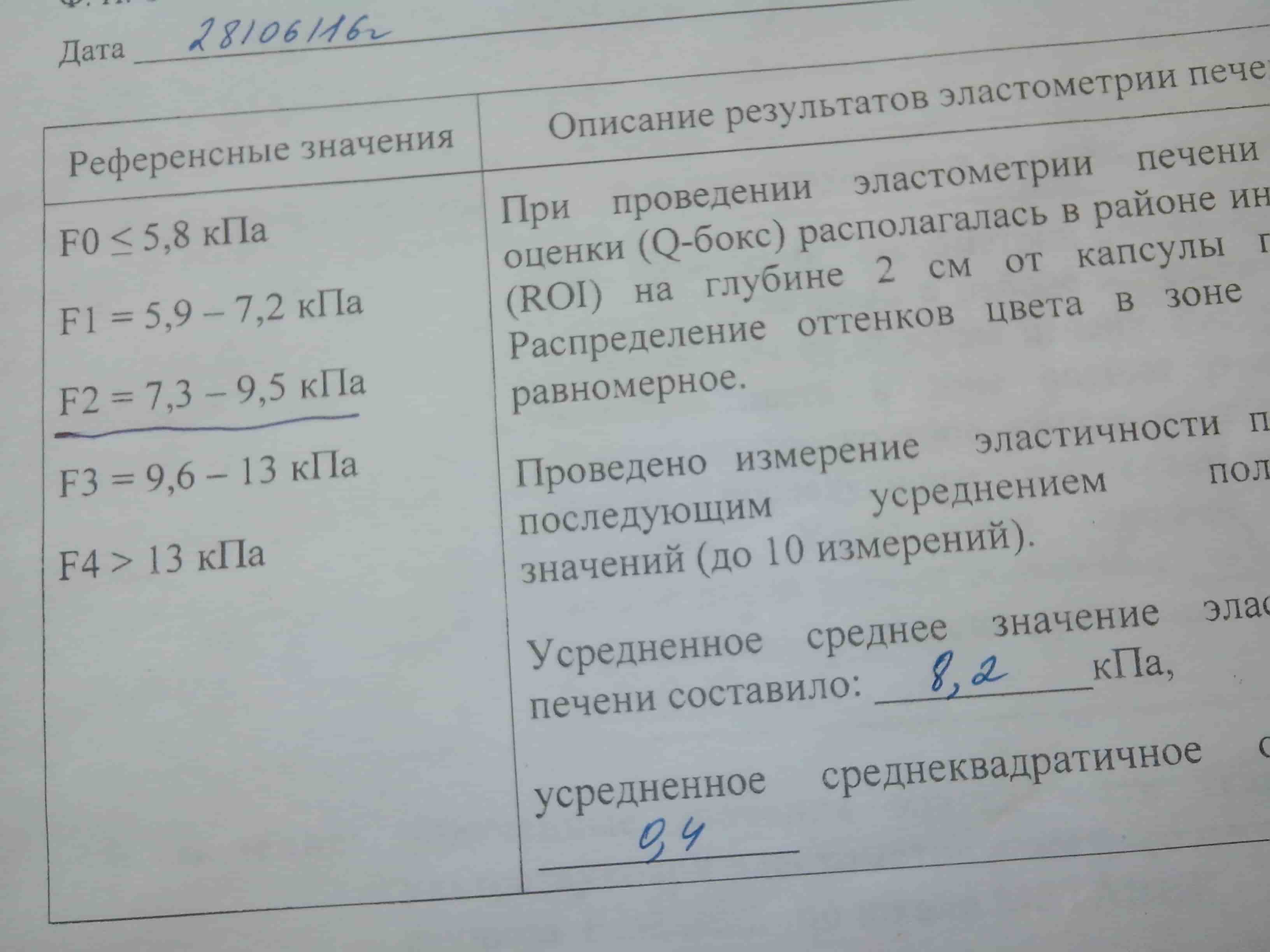 Вообще-то 5.6 кПа это f0. До 6.2 кПа считается, что фиброза нет. У меня щас 5.4. Это f0