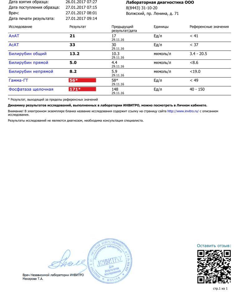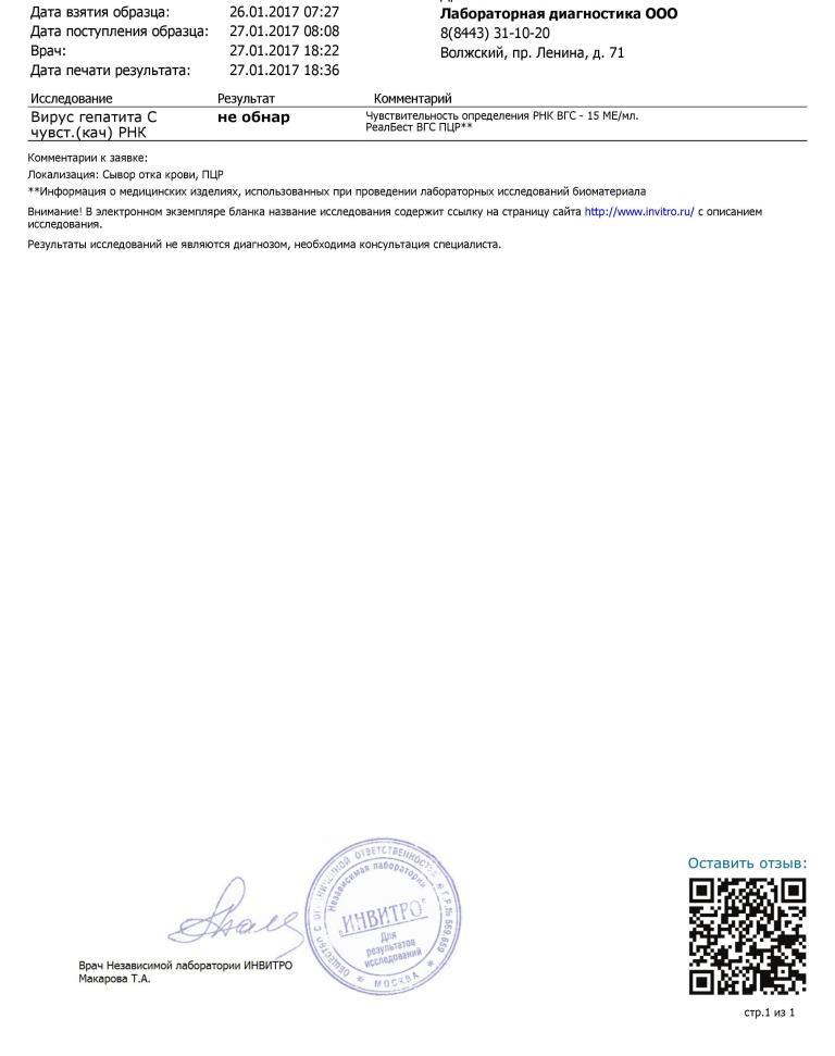 Фиброскан 08.2015 (11.0 КПа ) 01.2016 (10.4 КПа, 07.2016 -7,9кПа