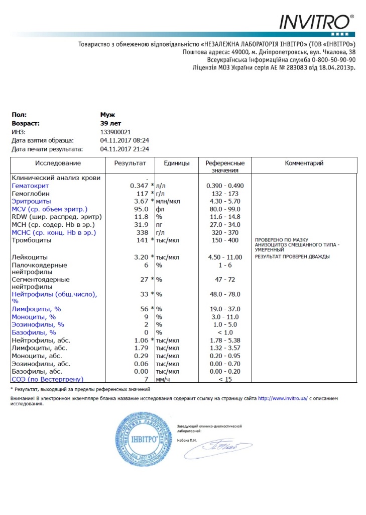 09.12.2017 сдал общий анализ крови. Показатели ухудшились, но не критично.