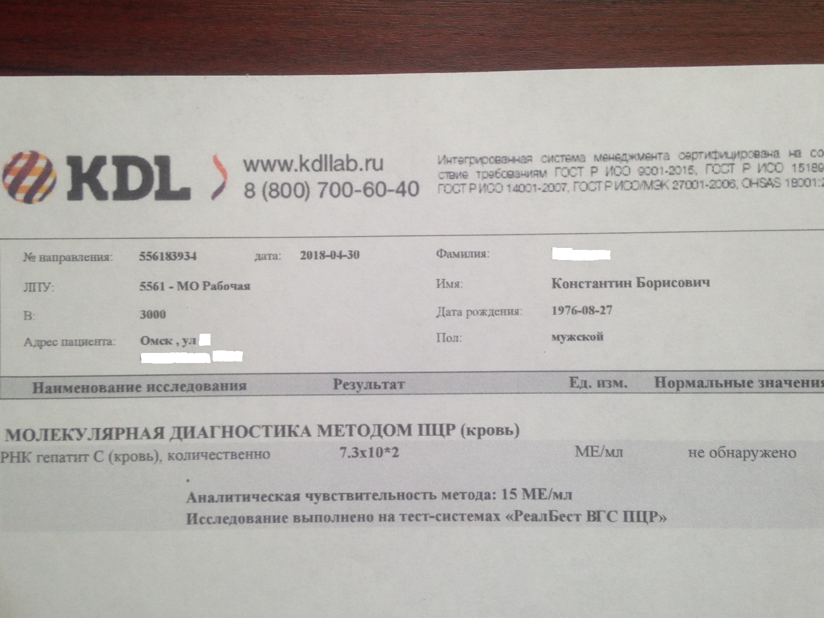 получил результат 2 недели ПЦР ( кол-во) КДЛ чуйка 15, за две недели с 20,5 млн. до 730.