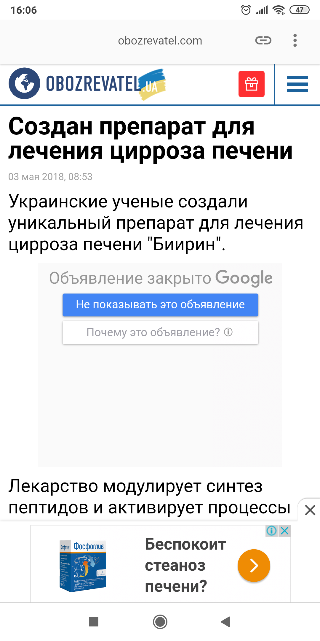 Добрый день, случайно прочитала про лекарство от цирроза, прочитала инструкцию , поняла ,что это Бад.