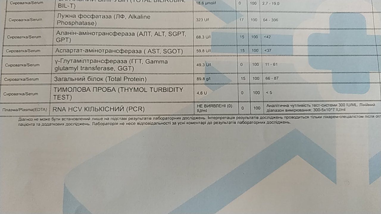 ПЛР отрицательно. АЛТ - 78. АСТ - 99. Тромбы - 175.