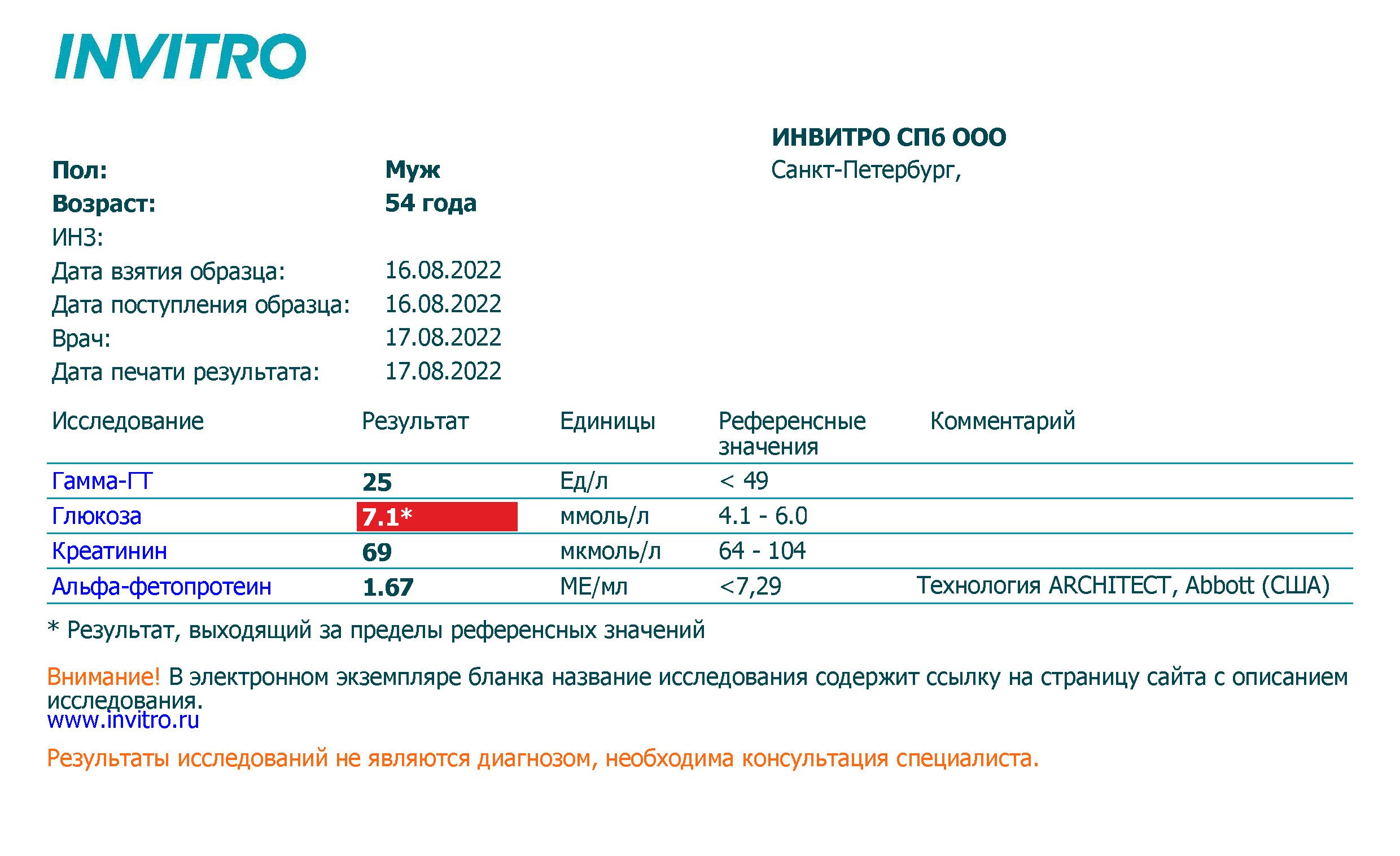 По глюкозе там странные значения, в июне в Хеликсе сдавал 2 раза, там значения 5,64 и 5.4. Гликированный гемоглобин тоже в норме был (5,1).