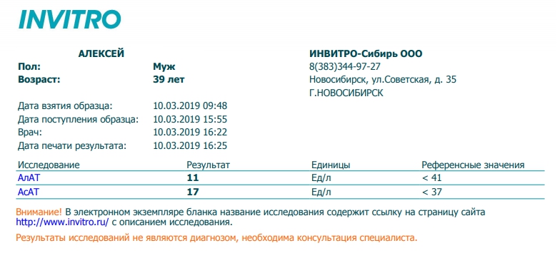 Анализы крови: АЛТ 23,3 АСТ 19,7