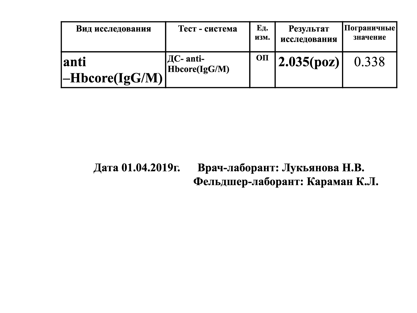 Здесь указаны суммарные титры антител класса IgM и IgG. Стандартный скрининг перед вакцинацией должен включать 3 анализа: Anti-HBc (который сдан), HBsAg, Anti-HBs.