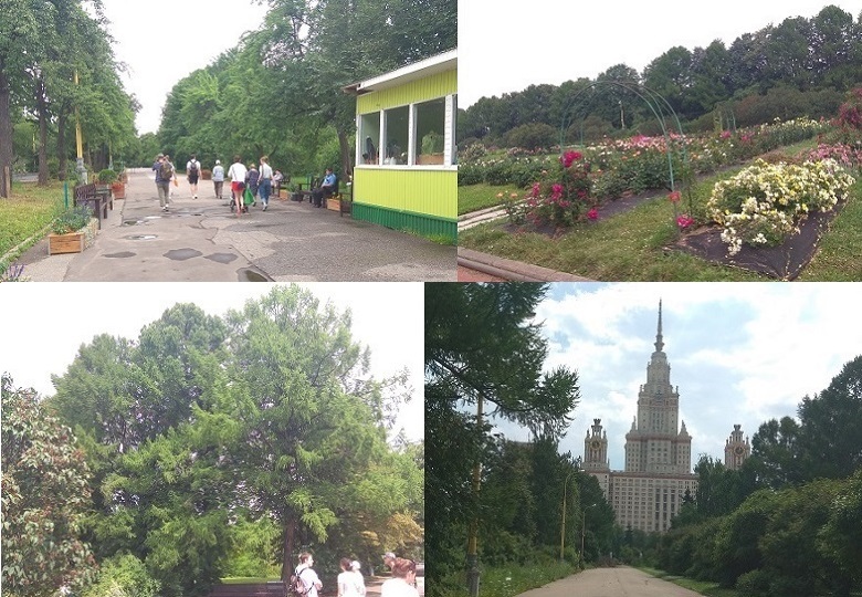 2. В конце ограды поворачиваем направо на Мичуринский проспект, потом проходим через проходную с дядьками в камуфляже. Проход на территорию МГУ в день матча и накануне только по пропускам, но мы записаны на экскурсию, нас пропускают. По улице Колмогорова, по Мичуринской аллее, по улице Академика Хохлова доходим до входа в Ботанический сад. Покупаем билеты на часовую обзорную экскурсию (обычный 400 руб., льготный 300 руб.) и вперед.