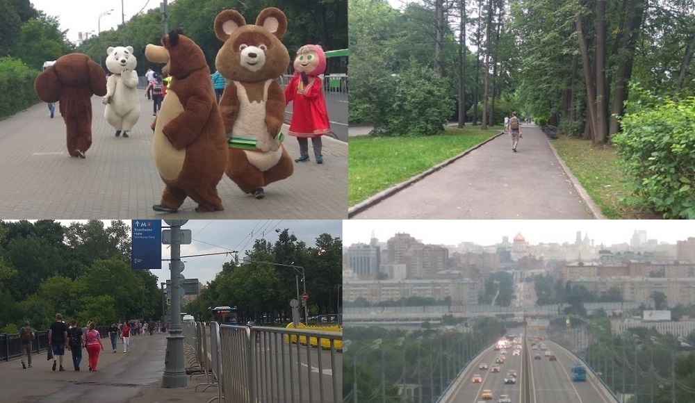 4. Потусовались и пошли к метро Воробьевы горы по улике Косыгина. Нарвались на банду отмороженых медведей с Машей и Чебурашкой. Нужно было слышать визги японских и китайских туристок, когда эти монстры душили их в объятиях.