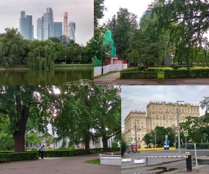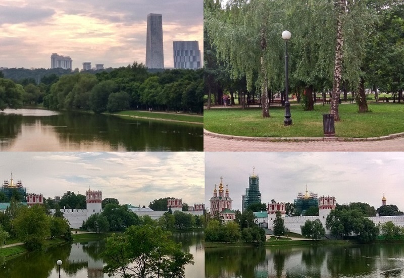 1. Между стенами монастыря и парком Новодевичьи пруды. Справа от них вдалеке видны башни Делового Центра.