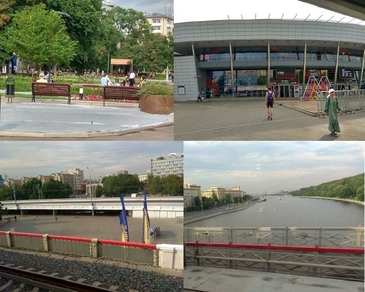 Последние снимки из окна вагона на Лужнецкую эстакаду и на Москву-реку.