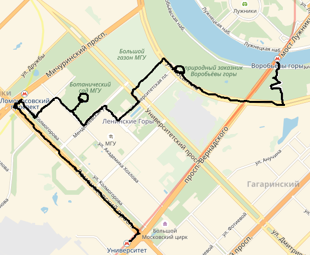 Прогулка закончилась. Итого в общей сложности маршрут на 16 км, их них 14 км пешком - 8 км от метро Университет до метро Воробьевы горы, потом 2 км на метро и еще 6 км пешком от метро Фрунзенская до станции Лужники. По времени маршрут занял 6,5 - 7 часов. Сказать, что я устала - это не сказать ничего, но мне очень понравилось. Через пару лет, когда отреставрируют Новодевичий монастырь, мы обязательно туда вернемся.