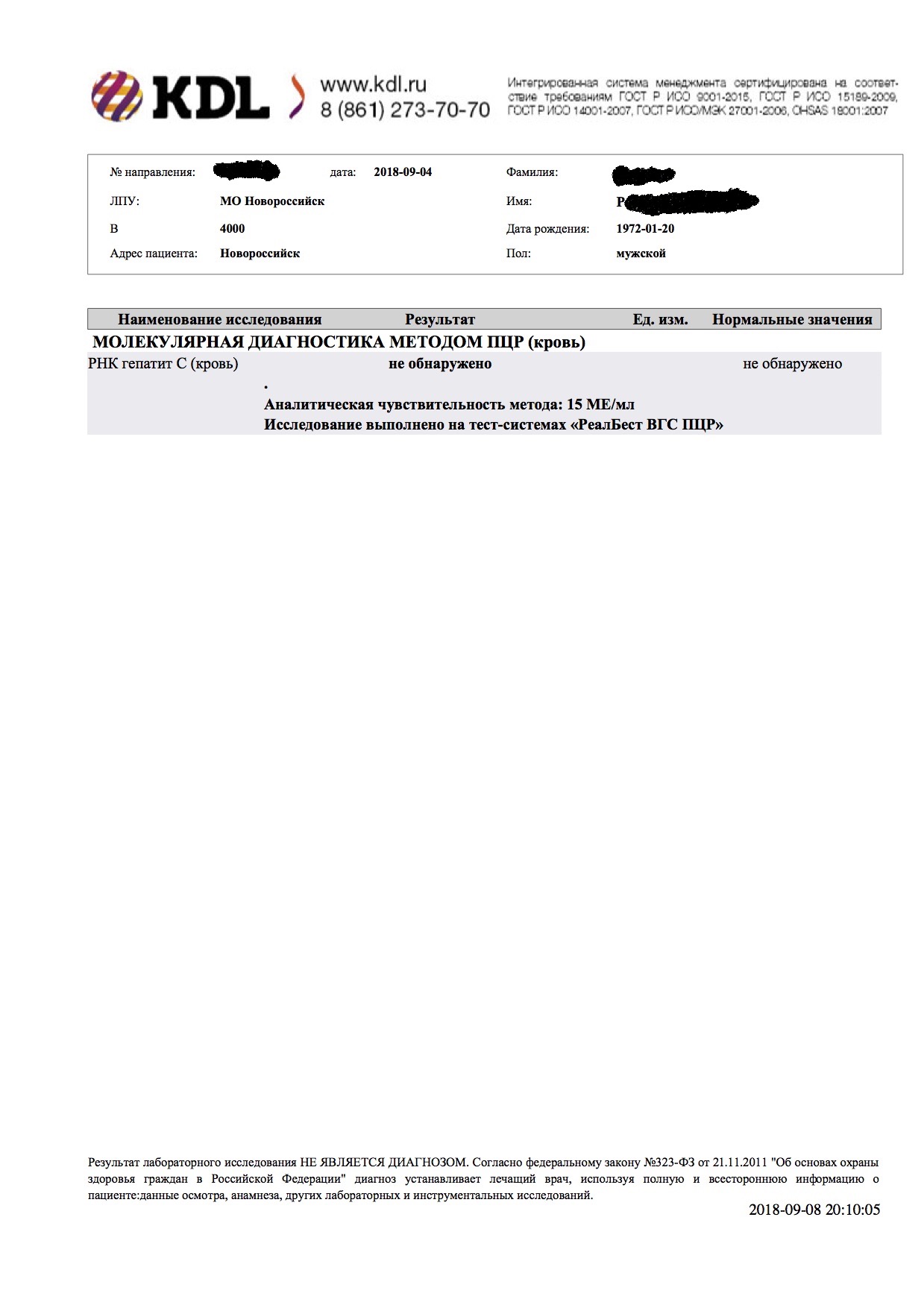 ПЦР 8 недель-минус (чуйка 50МЕ)
