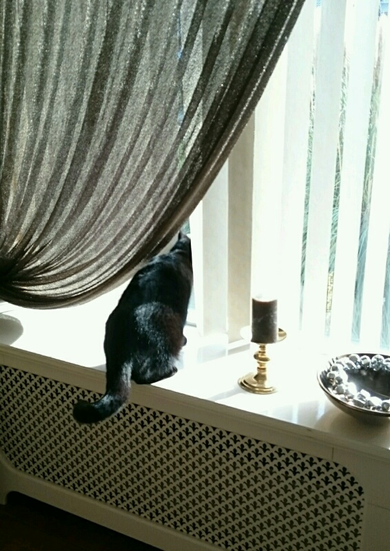 Решила быстренько пыль протереть, пока моих нет, открыла окошко проветрить, а тут конечно же снова он, вроде домой уходил .)