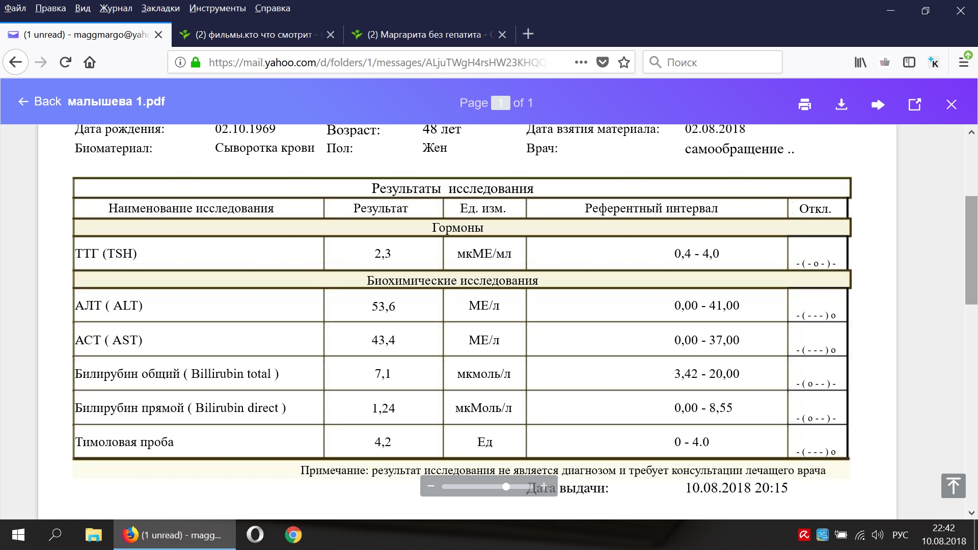 С момента окончания второй терапии прошло почти 2 года (без 1 месяца). Вот я удосужилась сдать анализы. Сдавала в Евротесте. Вирус гепатита не обнаружен и это вери гуд