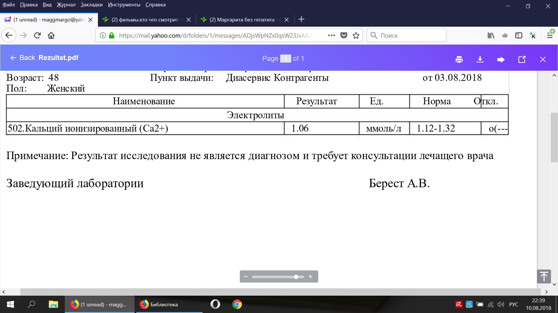 Но на момент сдачи крови, я его не пила около 2-3 недель, это точно. Теперь буду заморачиваться, про кальций