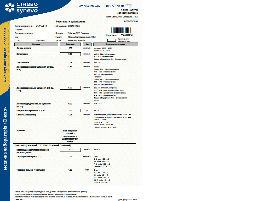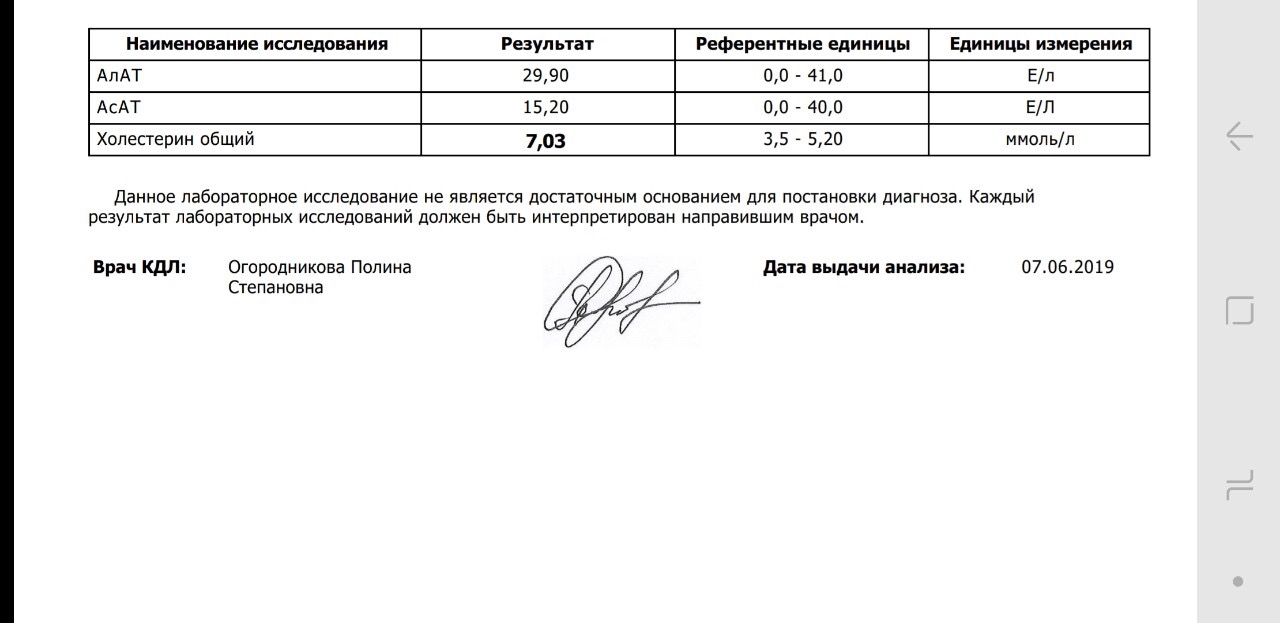 Холетерин буду снижать диетой. Ну а в целом все очень не плохо.