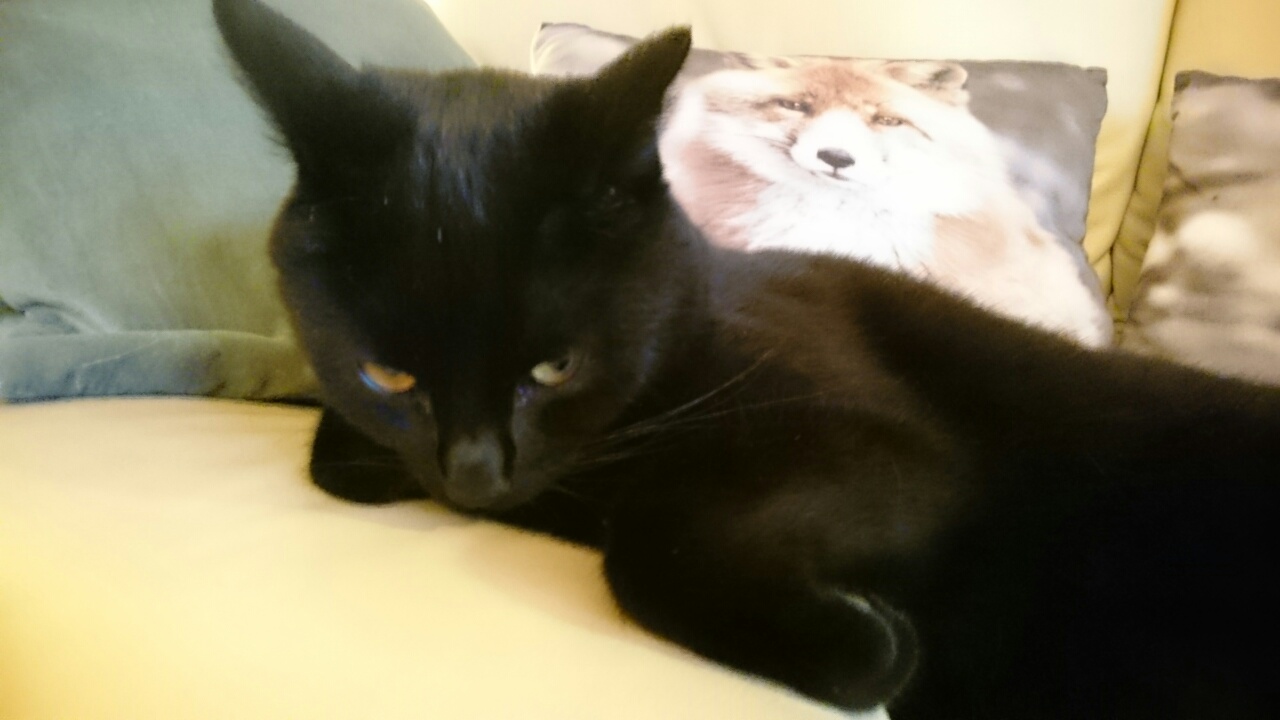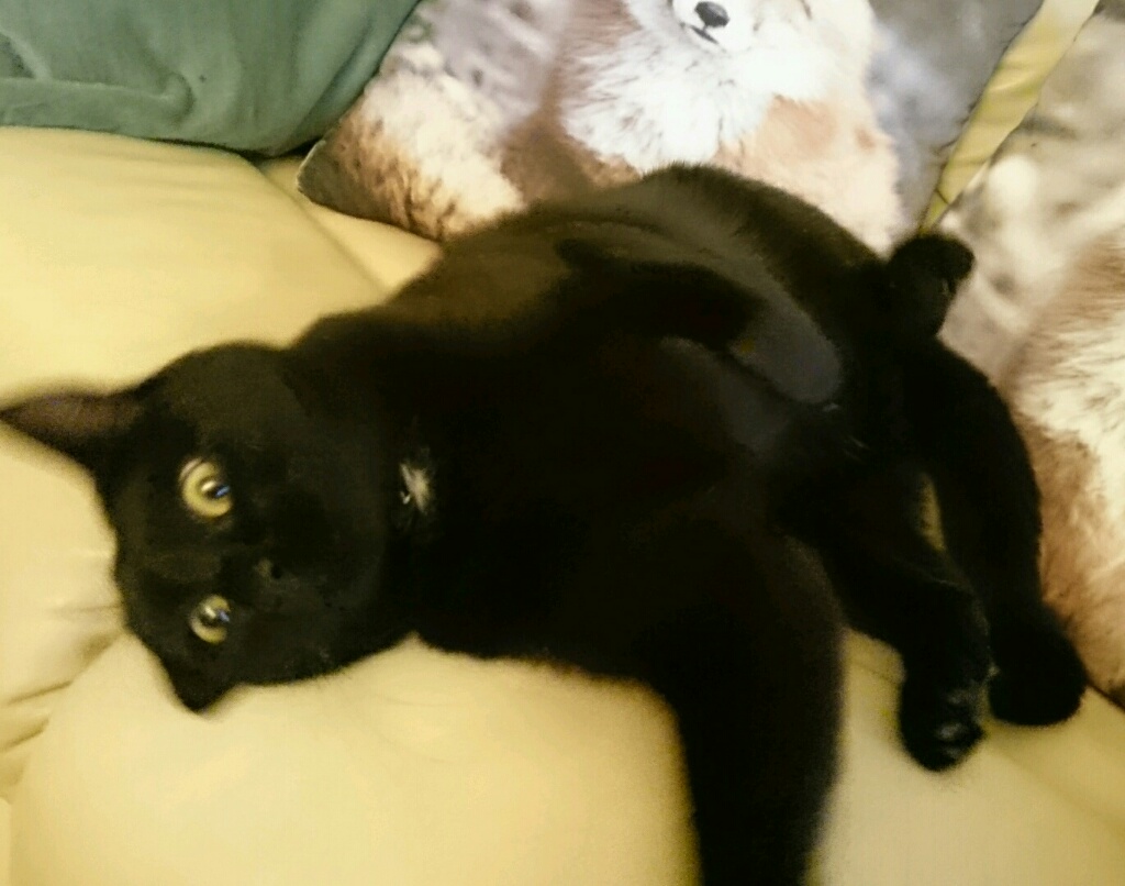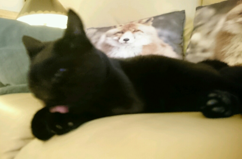 Кот начал мыться, когда подсела к нему и начала гладить, начал было играться, и тут же кусаться. Делал наглые морды, когда я ушла на другой диван - он уснул. А когда узнал, что пора снова в сад, морда стала какая-то такая.