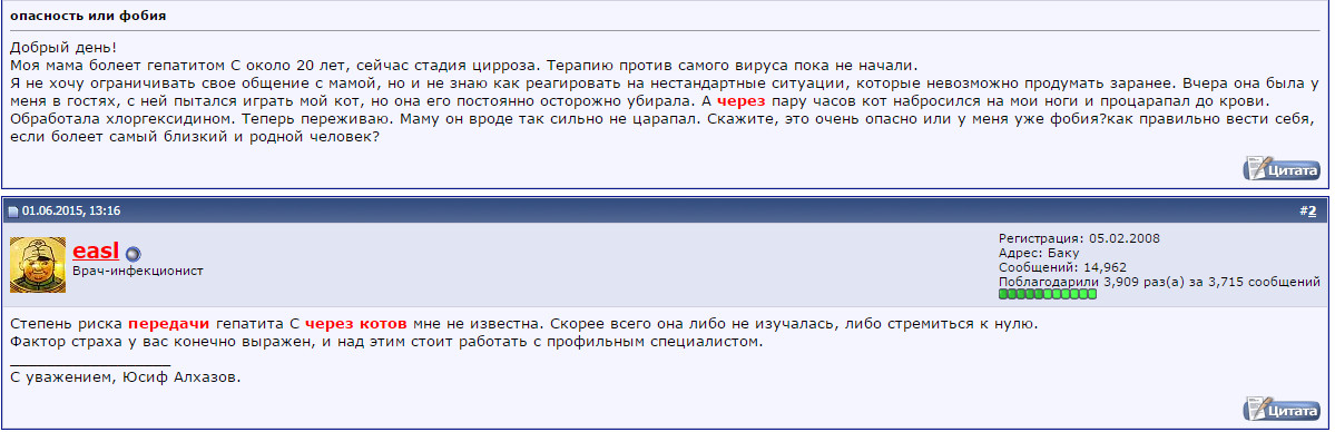 Тогда чтобы заразиться вам надо перелить собачью кровь !riverain писал(а):собаки болеют, причем вирусным и с фульминантным течением.mishqa писал(а):ЖИВОТНЫЕ НЕ БОЛЕБТ ГЕПАТИТОМ!