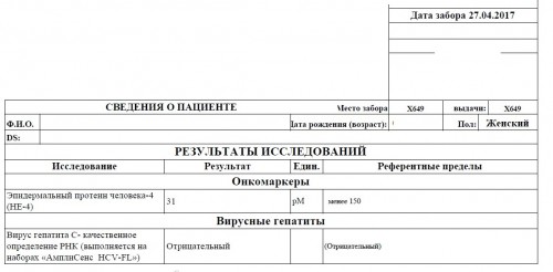 Добавлю скан Параллельно еще сдавала анализ на онкомаркеры. Один из них попал на этот бланк.
