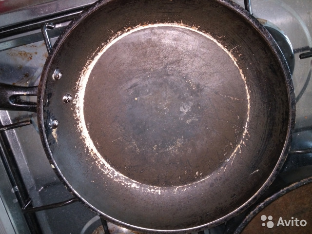 У меня есть одна такая, как на твоей второй фотке. У нее тоже по дну стальной такой обод образовался, но по центру нет такого темного налета. Мне кажется, что на этом затемнении как раз и будет пригорать. Я свою такую никогда не считала чугунной. Может, я чего не понимаю...