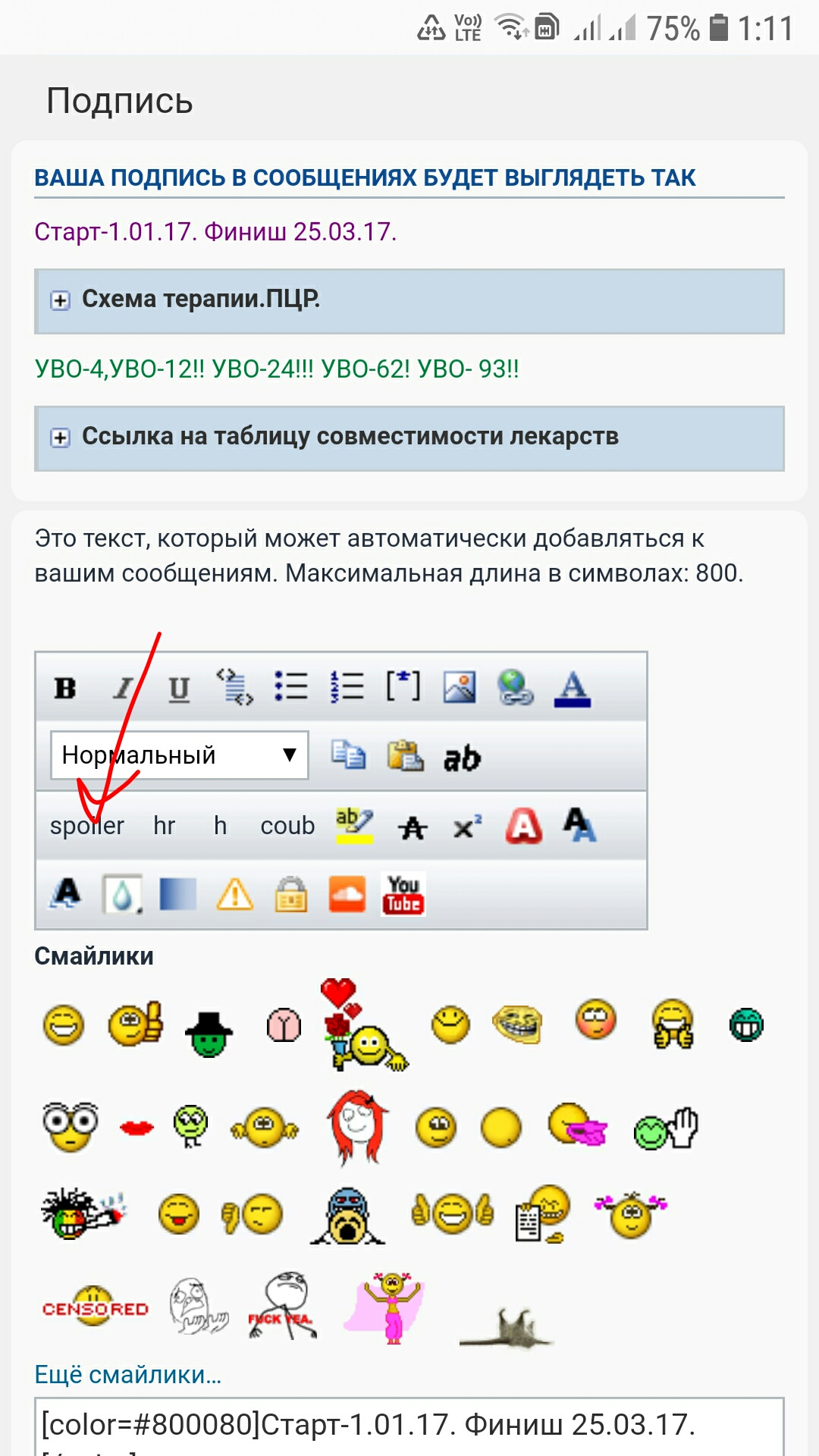 aslav, Алексей, приветик. Помоги мне все мои показания засунуть в +Анализы, как то через спойлер, кроме увошек. У меня нифига не получается, я че то не пойму как засунуть все между скобочек